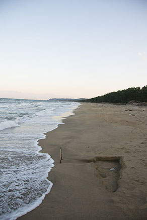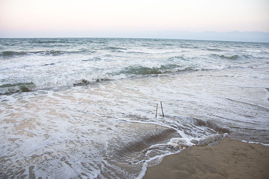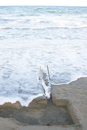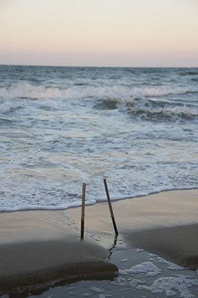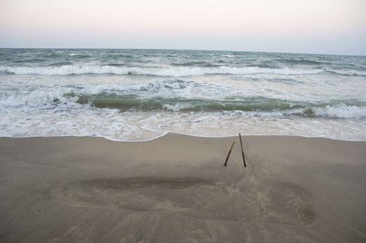 branches, sand digging
