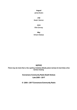 Connemara Death notices from connemara radio station's archive