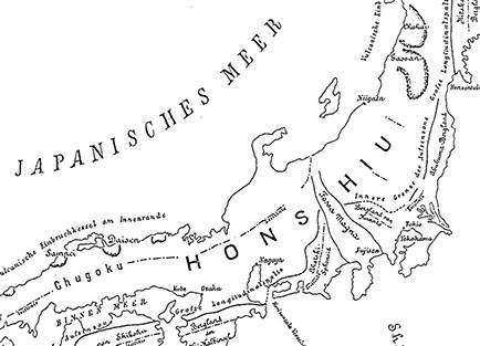 Look to the right on the right, Fossa Magna (sea) including that of Shinano-omachi - in about 200 million years ago - was where divided eastern and western Japan.