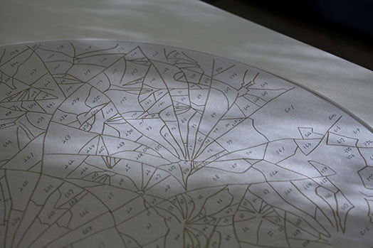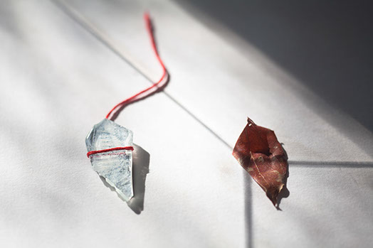 cracked mirror, fallen leaf found in Kitano Tenmangu Shrine that were being cut into the shape of the crakced mirror