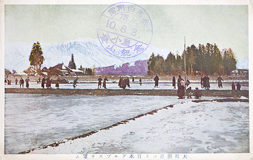 Postcard of Japan's Alps mountains, Shinano omachi