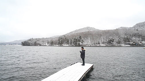 Opera singer singing in the Kizaki lake of Shinano-omachi